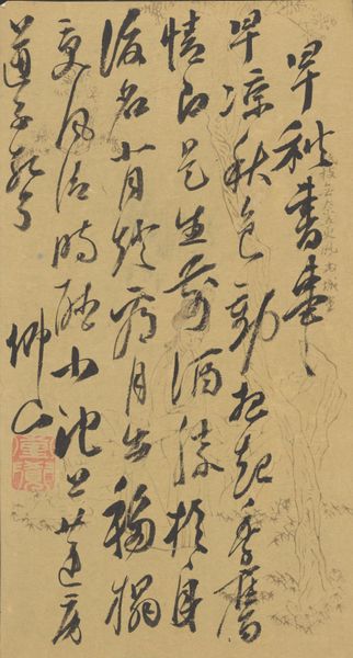 Song Jue created this undated letter with ink on paper. The dynamic arrangement of calligraphic forms immediately commands our attention. Notice how the varying ink densities contribute to the text's visual rhythm, with darker, bolder strokes contrasting against the lighter, drier marks. This contrast not only animates the surface but also underscores the tactile nature of the medium itself. The composition is structured yet asymmetrical, creating a delicate tension between order and spontaneity. The formal qualities here are not merely decorative; they are integral to the meaning. Drawing from semiotic theory, the ideograms act as signs. Each brushstroke has both individual and collective significance, reflecting the artist’s state of mind and cultural values. The letter challenges the Western concept of fixed perspective by incorporating elements of temporality and movement. Observe the interplay between positive and negative space, a common compositional strategy in Chinese art, which suggests a world of infinite possibilities. The calligraphic gestures capture and transmit complex ideas about self-expression, tradition and innovation.