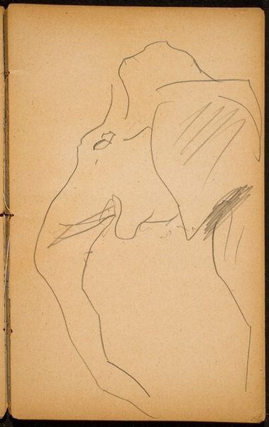 Editor: This is Max Beckmann’s pencil drawing, *Elefantenkopf*, or *Elephant Head*. The date’s unknown, but just looking at this simple line drawing, I feel a sense of melancholy. What do you make of this humble portrait, with its lonely outline? Curator: Melancholy is a great word for it. It reminds me of when I tried to draw my cat as a child—that feeling of grappling with a huge subject, only to end up with something...less grand. I think it reveals the elephant, but it also reveals Beckmann grappling with how to contain this huge, powerful being within the lines of his pencil. Doesn’t it make you wonder what other artistic giants have struggled with the same thing? The audacity of the artist to even try! Do you think Beckmann captured the essence of 'elephant-ness', or something else entirely? Editor: I’m not sure about essence… But there’s something vulnerable about its simplicity, something lost in translation perhaps? Was Beckmann trying to capture reality, or something more internal? Curator: Exactly! And it's very 'German Expressionist', this quest for something internal. I find myself pondering what this image says about Beckmann himself. Was he drawn to the elephant's otherness? His own? Maybe artmaking, at its core, is simply an existential reflection via these sketches. Each mark both there and absent; presence and vacancy... Like whispers in an empty zoo enclosure. Editor: It’s like he's drawn an idea rather than an animal. I really didn’t expect to feel so moved by an elephant drawing today. Thanks for this… it gave me a new perspective! Curator: Likewise. It's incredible how a simple line drawing can provoke so much thought. That, I think, is the magic of art.