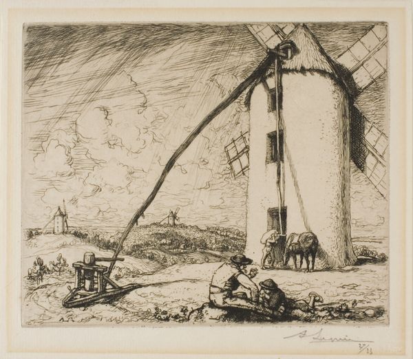 Norbert Goeneutte created this etching, The Mill at Saint-Jacut. The dominant symbol here, of course, is the windmill, a structure deeply intertwined with notions of labor, transformation, and even the passage of time. Historically, windmills have been symbols of human ingenuity. They harness the power of the wind, converting it into energy to grind grain, and pump water. This image evokes something more profound. Consider Don Quixote tilting at windmills – a tale of romantic idealism clashing with reality. In medieval art, the motif of the wheel, akin to the windmill’s turning sails, often symbolized fortune, both its rise and its inevitable fall. We see similar circular motifs in mandalas, which appear across cultures from Tibet to the Americas, and also in the rose windows of Gothic cathedrals, each suggesting a cyclical, repetitive, and sometimes fateful pattern. The windmill is charged with a sense of melancholy, its turning blades almost like a lament. It reminds us that everything changes, yet some forms endure, carrying echoes of the past into the present.