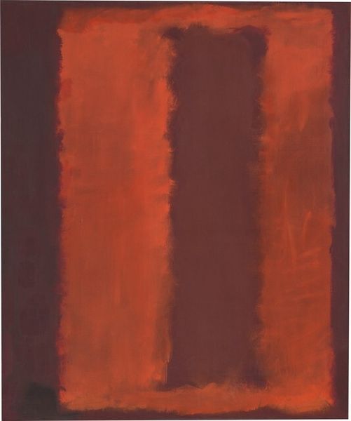 Editor: Here we have Ian McKeever’s "Print F - Version V" from the Tate Collection. The use of bold red and black is striking. What's interesting is how the grid both contains and distorts these colors. What do you see in how the work was made? Curator: Let's consider the labor embedded in this print. The layering of color, the creation of the grid—it all speaks to a process of construction and manipulation. How does the materiality, the physical presence of the ink on paper, affect your understanding? Editor: It makes me think about repetition and the artist’s hand. The grid doesn't seem perfect. Curator: Exactly. The imperfection challenges the notion of mass production. It highlights the artist's intervention, their individual choices. It prompts us to question the relationship between handmade and machine-made. Editor: I hadn't thought about it that way. Seeing the process helps me appreciate it more.