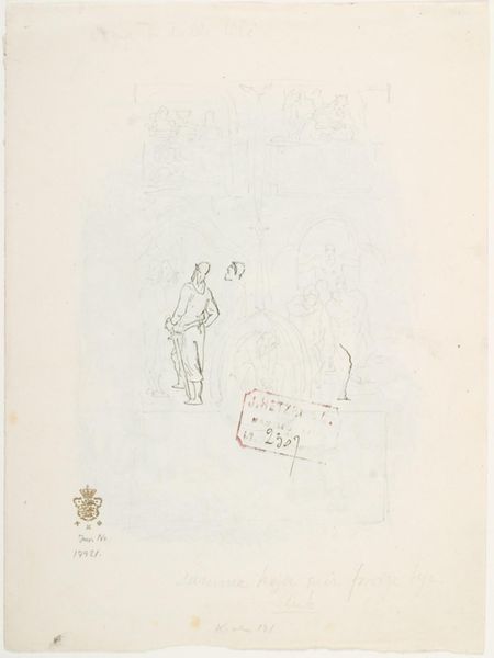 Editor: We're looking at *Gazette du Bon Ton, 1924 - No. 6 : p. 249: Les Nations à Paris* by Charles Laborde, a watercolor and print work from 1924. The title suggests an assembly of nations in Paris, but the image strikes me as quite satirical, maybe even a bit jaded. Everyone appears so stiff and self-important. What do you see in it? Curator: It’s like stumbling into a bizarre tea party thrown by diplomacy itself, isn’t it? Chas Laborde, bless his observant soul, has captured something timeless here: the almost theatrical posturing of international relations. I see a watercolor illustration filled with shrewd observation and understated humor. Look at how he captures each face - like tiny caricatures ripe with cultural nuances and probably the headache of postwar negotiations! Notice the architecture faded in the background: does it give you the feeling that something substantial looms just beyond the present stage of people? Editor: It does now! The sketchiness of the architectural details almost feels dismissive, like the backdrop isn't really important. So, Laborde’s really emphasizing the people and perhaps their... artificiality? Curator: Exactly! Each individual seems plucked from a different corner of the world, their identities carefully curated. Consider the stylistic choices of art nouveau, with its inclination to distort or playfully reshape familiar perspectives. What emotions do you perceive beyond mere facial expressions? Is it perhaps boredom? Resignation? Laborde seems to imply it is not exactly love, acceptance, nor joy. Editor: Hmm, there is a sense of performativity in those expressions. So it's not just nations *in* Paris, but *performing* Paris? It's like a commentary on the expectations of international decorum. I thought it was just an event, but now I see the real narrative. Curator: Yes! And that narrative, dressed up in art nouveau finery, continues to whisper in our ears today. Even a simple glance reminds you about complex topics - doesn't that tickle your artistic soul? Editor: Definitely, it really has changed how I view this artwork, there's so much going on under the surface! Thanks for opening my eyes!