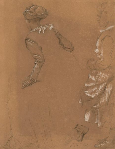 Editor: So here we have "Alberich and the Rhinemaidens," a charcoal drawing by Luc-Olivier Merson. The swirling composition, all rendered in these earth tones, makes me think of a hidden world. What strikes you about it? Curator: It's the materiality itself that interests me. Charcoal, a humble material born of burned wood, is here employed to depict a scene of mythological theft and frustrated desire. Look closely, what kind of labour might have gone into making such a large work with such delicate tools? How do we equate that human toil with the exploitation portrayed within the narrative? Editor: That's a good point. We often separate the creation from the story, but Merson is literally making a valuable artwork *about* the theft of value. Curator: Precisely! Consider too the *scale* of production versus consumption. A charcoal drawing, however impressive, isn't as "precious" as, say, an oil painting on canvas. Does that impact how the viewer engages with themes of greed and possession in Wagner’s “Ring” cycle? Or could this be a preliminary study for another, 'higher' artform? Editor: It certainly changes the tone. A massive, elaborate painting might almost celebrate the opulence, but the charcoal feels more like a commentary. What about the contrast between the rough, sketchy lines and the smoothness of the figures? Curator: Ah, the duality continues! The raw, almost industrial, nature of the medium contrasts with the idealized bodies of the Rhinemaidens, figures usually associated with beauty and purity. This is no simple illustration, is it? This charcoal dust allows Merson to comment on commodity, labour and myth all in one work. Editor: This makes me look at not just the "what" of the image, but really dig into the "how" and the "why" it was created this way. Curator: Exactly. By focusing on the material conditions, the means of production, we unlock new layers of meaning. Seeing beyond just subject matter, toward the artist's choices in *making* the piece, and those implications on culture.