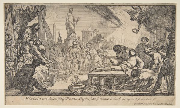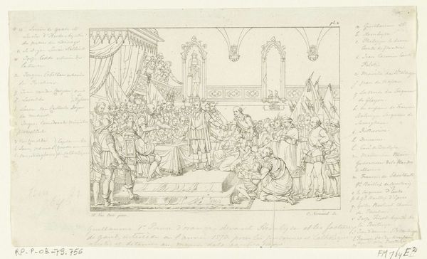 This pen and ink drawing by Charles Parrocel captures a meeting of the Order of the Holy Spirit, likely in France during the early 18th century. It's a scene brimming with social and institutional significance. Parrocel meticulously depicts the hierarchy, with nobles and clergy gathered in an ornate hall, complete with observers in the balcony. The Order itself was a tool of royal power, used to bind powerful families to the monarchy through honors and prestige. The artist's attention to detail – the costumes, the setting, even the gestures of the figures – speaks to the importance of visual codes in communicating status and authority. To fully understand this drawing, we need to delve into the history of the French court, the role of aristocratic orders, and the visual culture of the time. Archival records, portraits, and accounts of court life would all shed light on the social dynamics at play here. Art like this wasn't just decoration, it was a reflection and reinforcement of power.
