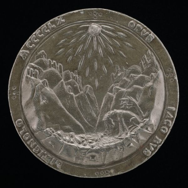 Curator: This medal, "Britannia Recording Merit," dates back to around 1800 and is by an anonymous artist. It's crafted from metal using engraving and relief techniques. Editor: The relief really makes the figures stand out. The sheer labor involved in producing something so detailed on such a small scale is striking. What speaks to you about this piece? Curator: The material itself, the metal, and the techniques used - engraving and relief - were not neutral choices. Metal signified permanence, value, and status. Consider the means of production. Who was commissioned to make it? What was the role of the engraver, the laborers? The subject of Britannia, of course, references an allegorical figure which in itself brings to mind other imagery. How does this object function within the culture of Neoclassicism? Editor: That makes sense. It's not just about the imagery but also the statement made by choosing this medium and these specific production methods. How does the medal challenge or reinforce social boundaries? Curator: Think about who would have possessed such an object. It's about power, isn’t it? This medal becomes a commodity imbued with social meaning. How does the portrayal of Britannia – with those rays of light seemingly “enlightening” and shining on the "children", a scene next to the buildings, etc. – contribute to legitimizing authority? Consider too, how neoclassical aesthetics shaped, and were shaped by, political and economic ideologies of the time. Editor: It's amazing to think about all the layers of meaning embedded in something so small and seemingly straightforward. I didn't consider the implications of it being metal. It's like understanding the material opens a whole new door. Curator: Exactly! We move past simply aesthetic appreciation and start questioning the power structures inherent in art production and consumption. Materiality allows us to critically engage with history. Editor: I'll definitely look at artworks through a materialist lens from now on. It adds a crucial dimension!