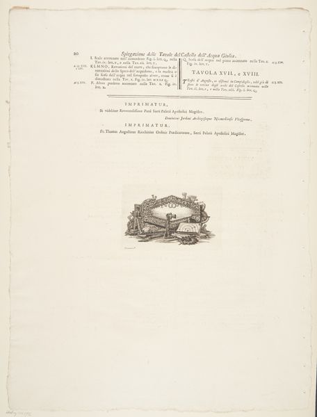 This text sheet, Concerning the Fountainhead of the Acqua Giulia, was produced by Giovanni Battista Piranesi, most likely in Rome. It is an etching, a printmaking process that involves using acid to cut lines into a metal plate, which is then inked and used to create an image. The image showcases Piranesi’s meticulous technique, and captures the material essence of Roman architecture. The etching process allowed him to create fine, detailed lines, crucial for rendering the textures and forms of stone and masonry. The careful rendering of light and shadow gives the scene depth, highlighting the weight and scale of the architecture. Piranesi was fascinated by the grandeur of Roman engineering. His etchings weren’t just documents; they were arguments for the value of skilled labor and the cultural significance of monumental works. The prints circulated widely, influencing the Neoclassical movement and reminding viewers of the labor and ingenuity required to build civilizations. In its way, printmaking allowed Piranesi to extend this labor into his own time.
