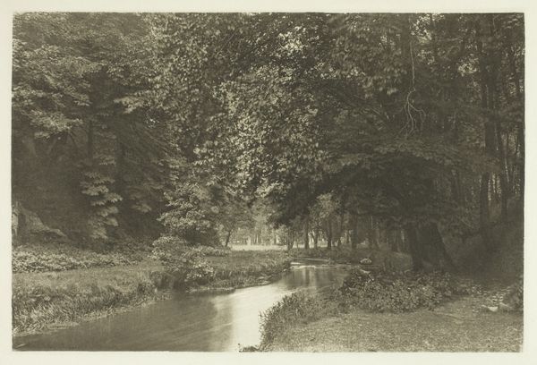 Alfred Rosling captured this image, "Scene near Godalming, Surrey," using photography, a medium that was still relatively new. The image presents a quiet stream cutting through a lush landscape in Surrey, England, during a time of significant industrial and social change. Rosling’s choice to focus on the untouched beauty of the English countryside speaks to a broader cultural narrative, where the pastoral landscape was seen as a site of purity and escape. The image evokes a sense of tranquility, offering a respite from the rapidly changing urban environments. Consider the social and cultural context: the rise of photography democratized image-making, yet access and representation were often skewed along lines of class. This scene, carefully composed, also hints at notions of English identity tied to the land. As you observe the photograph, ponder how it invites reflection on our relationship with nature.