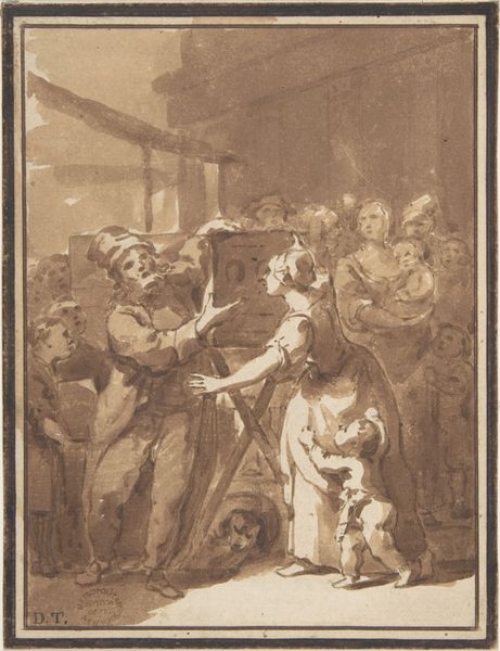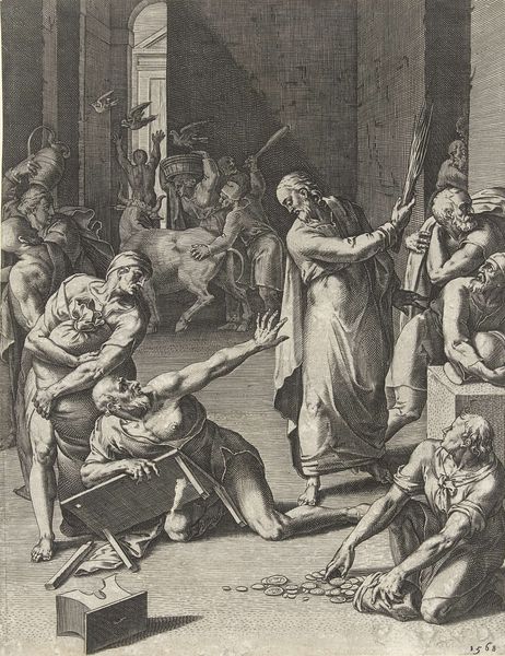 Curator: Good morning. Today we're standing before Caravaggio's "Resurrection of Lazarus," a stunning oil painting from 1609. What's grabbing you first about this, right here and now? Editor: It's just so...dark! Like being in a cave. You can almost smell the earth, the dampness. It feels claustrophobic, even with the figures present. A stark contrast of light and shadow - that's quite a striking opening for a resurrection. Curator: Right? Caravaggio never shied away from the gritty details. What strikes me is the theatrical drama. See how the light seems to stage the event, spotlighting Lazarus as he's jolted back to life. One figure points towards Lazarus - it's as if we the viewer are invited to be present as an awakening unfolds, right here in this tomb of human drama. Editor: That raised arm is so potent! It’s both commanding and pleading, perhaps a gesture asking the heavens. Hands have always symbolized power, creation, and transmission; this artistic decision adds to the painting's emotional charge, imbuing a strong emotional resonance to its symbolic implications. Curator: It's pure Baroque, all right? Full of dynamic emotion and gesture. Lazarus, pale and limp, acts as the perfect contrast to the others’ frenzied movement. It seems less about literal resurrection and more about that fragile threshold between life and death. Editor: Definitely. And I'm particularly drawn to the skull at the lower right, near the hands that clutch for meaning. In Christian iconography, the skull signifies mortality, and this painting uses it brilliantly. Its very placement next to hands reaching out into the void conveys our perpetual human drama between material existence and death, isn't it so telling about ourselves and how we engage with reality? Curator: Spot on. Caravaggio masterfully uses these kinds of common allegories to underscore larger themes about spiritual awakening, redemption, all of it. His life wasn’t exactly angelic - he was famously tempestuous, but here, maybe he grapples with the chance for rebirth through faith? Editor: Perhaps so. Beyond faith, these figures remind me about ourselves—frail humans— and their urgent struggle against life's inevitable conclusion. Regardless, it seems "The Resurrection of Lazarus" asks us if we are ready to meet resurrection. Curator: Wonderfully put. For me, it encapsulates the idea of radical transformation. Even now, centuries later.
