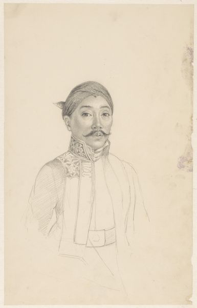 Editor: So here we have "Nicolae Petrașcu in 'Hidalgo'," an oil painting by George Demetrescu Mirea. There isn't a known date for the piece. What strikes me is how the dark costume of the subject contrasts with the bright lace collar. What can you tell me about it? Curator: Certainly. The power of this piece resides in its compositional elements. Notice the pyramidal structure, anchored by the dark suit, which provides a sense of stability and poise. It’s the strategic arrangement of shapes and forms that gives the painting its academic appeal. Editor: The pyramid composition you’re referring to, is that standard for academic portraiture? Curator: Precisely! Now, consider the use of color. Observe how Mirea employs a limited palette, predominantly dark hues, against which the bright whites become highly significant. It directs our gaze immediately to the subject’s face, and then downward, following the fall of the triangular inset of white linen and, subsequently, up again with the lacy detail around the collar, thus structuring the entire viewing experience. Editor: That's a very compelling reading of the use of the painting’s contrasts. What else do you see in it? Curator: Consider also the relationship between line and shadow, and how these define not only the subject's facial features but also create the texture of the garments and background. These formal strategies contribute to a reading where the artist engages not in mere representation, but deliberate construction of visual harmony. Are you finding a greater understanding from this analytical approach? Editor: Definitely. I see now how focusing on the purely visual elements unlocks another layer of interpretation beyond the subject matter alone. Thank you! Curator: My pleasure. Sometimes the most revealing insights are gleaned by focusing on what is materially present within the artwork.