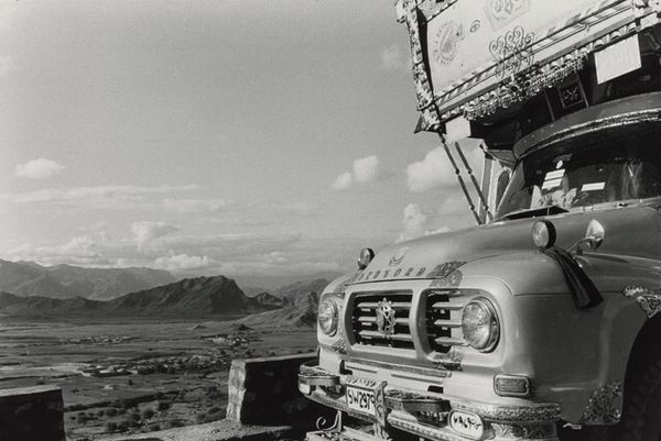 Editor: This black and white photograph, "Copacabana, Bolivia" by Ed Grazda, taken in 1975, presents a landscape of buildings against the backdrop of distant mountains. The strong contrast between light and shadow gives it an almost surreal feeling. What draws your eye, and how do you interpret this work? Curator: It's that very contrast, isn't it? Grazda's sharp realism feels like a dream caught in aspic. The high-key lighting washes the scene with an almost unbearable clarity, except where these deep, encroaching shadows assert themselves. They're like figures—silent witnesses—perhaps even metaphorical inhabitants of a place that feels strangely deserted despite its suggestion of habitation. And those mountains in the back, serene and immutable, watching the slow dance of light and dark... do you feel a slight theatrical quality here, perhaps something staged or posed? Editor: Yes, the mountains create an amazing backdrop, but the shadows are almost like characters in a play. Curator: Exactly! A play where the set is everything and the players are merely suggested. What I love most is how Grazda avoids sentimentality, even though there’s this profound sense of place. Have you noticed how the monochrome adds to the stark, timeless quality, lifting it out of simple documentation? Editor: That's a great point, it does make it seem timeless, rather than just a record of a specific place in 1975. Curator: Photography can trick us into thinking it’s capturing reality but it's often an illusion of reality. Gazda shows the way with light and dark to evoke, almost summon, the feelings inherent in a landscape that could have just passed for ordinary. What I see is the essence of the place. Don't you think? Editor: Definitely. I'll never look at black and white landscapes the same way again. Thank you. Curator: And I was reminded never to trust my first impressions - photography shows me how relative and ultimately changeable these feelings may be.