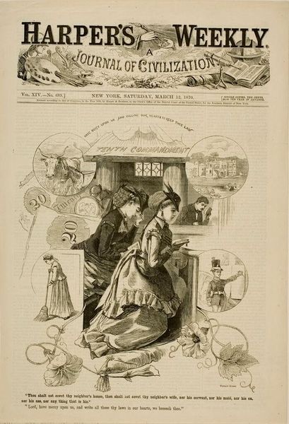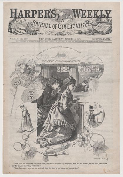This wood engraving, entitled “The Tenth Commandment,” was made by Winslow Homer and published in Harper’s Weekly, a popular journal of the time, on March 12, 1870. Homer was working as an illustrator during this period. The image is a commentary on the tenth commandment, "Thou shalt not covet," and it reflects the social tensions of the Reconstruction era in the United States. The opulence associated with the House of the Rich is juxtaposed against the servitude of the working class woman which creates meaning through visual codes that relate to social class. Harper's Weekly was a widely read publication that helped to shape public opinion, using imagery to reinforce the existing social structures of the time. When examining this type of work, a historian can research publications and other popular media, in order to better understand the complex interplay between art, commerce, and social values. Ultimately, it shows how art is contingent on the social and institutional context.