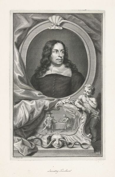 This print of Oliver Cromwell was made by Jacob Houbraken, likely in the 18th century, using engraving techniques. It presents a carefully constructed image of a controversial figure in British history. Houbraken, a Dutch artist, probably never met Cromwell, who died in 1658. So why create this image? Consider the context: the 18th century was an age of Enlightenment, with debates raging about the rights of man and the role of government. Cromwell, who led the Parliamentarian forces against the monarchy, would have been seen as a figure of revolution, both inspiring and alarming. The print’s visual codes are revealing. Cromwell is shown in armour, a symbol of military strength, but the scene below suggests civic virtue, perhaps a reference to his governance. The architectural setting lends a classical dignity. Understanding this image means exploring the complex politics of memory and the ways that historical figures are reshaped to serve contemporary needs. Accessing archives and historical texts can provide deeper insights into the evolving image of Cromwell and the public role of figures like him.