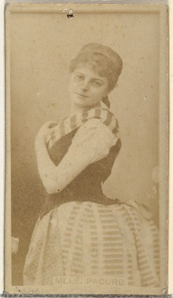 This small card featuring Milly Meyer was made by W. Duke, Sons & Co. as a promotional item for Duke Cigarettes, sometime between 1870 and 1920. What’s fascinating about this seemingly simple image is its insight into the cultural landscape of the time. The burgeoning advertising industry was finding new ways to connect with consumers. By associating their product with popular actresses, Duke Cigarettes tapped into the public’s fascination with celebrity culture. Notice how Meyer's attire reflects the fashion trends of the era: the elaborate hat, the tailored jacket, the emphasis on a refined image. Consider the role of photography in shaping public perception. Images like these helped to create and disseminate idealized images of beauty and success, reinforcing certain social norms. To understand this card fully, one might delve into the history of advertising, the culture of celebrity, and the social role of women in the late 19th and early 20th centuries. These resources help us to see how art is embedded in a complex web of social and institutional relationships.