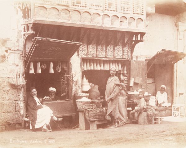 Editor: Here we have Kassian Céphas’s “Rechtszaak bij de assistent-resident,” a gelatin silver print from between 1886 and 1887. The composition and the contrast makes it appear like a stage where two different communities interact. What underlying tensions do you see represented in this piece? Curator: This photograph, taken in the Dutch East Indies, is rife with power dynamics. Note how the European colonizers are seated at the table, elevated both literally and figuratively. This visual hierarchy reflects the real social and political hierarchies of the time. What do you observe about the people seated on the ground? Editor: They appear to be the subjects of this… trial, maybe? There’s a palpable sense of vulnerability and subjugation. Curator: Precisely. Their positioning on the ground, in contrast to the seated colonizers, reinforces their lack of power and agency. It's a deliberate staging of colonial authority, reflecting orientalist tropes of the period. What do you think the photographer, Céphas, is trying to say by documenting this scene? Editor: Perhaps he is attempting to document the realities of colonial injustice? Or is it merely a detached observation? I find it difficult to know his intentions. Curator: It is hard to ascertain intent, however by presenting us with this visual record, Cephas compels us to confront the complex legacy of colonialism and consider the experiences of those marginalized within its structures. This is not simply a record but a call to dialogue and engagement. Editor: It’s certainly prompted a new way of seeing this photograph. Thanks for untangling those complex layers. Curator: Indeed. And it shows us how deeply rooted colonial power was, not only politically, but also in the everyday visual representations of that time.
