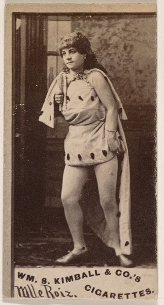 This is Card Number 189, Gertrude Gardner, made by W. Duke, Sons & Co. as part of their Actors and Actresses series, to promote Cross Cut Cigarettes, between 1870 and 1920. During this period, the commodification of images of women for commercial purposes became increasingly common. Actresses like Gertrude Gardner, who embodied both talent and visual appeal, were strategically used to promote products. The card reveals complex interactions between gender, performance, and consumer culture. Gardner’s attire is both suggestive and restrictive, encapsulating the era’s conflicting attitudes towards female sexuality and public presentation. These cards served not only to advertise cigarettes but also to create and circulate particular ideals of beauty and femininity. They invite us to consider how such images contributed to broader societal expectations and judgments about women. It makes me think of the emotional labor involved in conforming to societal standards of beauty and the role of performance in navigating public life as a woman.