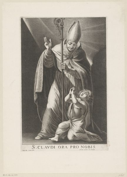 Jean Couvay created this engraving of Saint Nicholas of Myra with three children in a vat in the 17th century. It illustrates a popular legend where Saint Nicholas resurrects three children who were murdered and pickled in a brine tub by a greedy butcher during a famine. Made in the Netherlands, this piece reflects the deep religious sentiments of the time, particularly the veneration of saints and the belief in miracles. The visual codes used here – the halo, the bishop's attire, and the act of resurrection – all reinforce the saint's divine power and his role as a protector of the innocent. The setting of a coastal town, complete with a ship in the background, underscores the importance of trade and seafaring in Dutch society, while also referencing Saint Nicholas's patronage of sailors. To understand this image more fully, we would need to delve into hagiographies, religious texts, and the economic history of the Netherlands. The interpretation of art is always contingent on its social and institutional context.