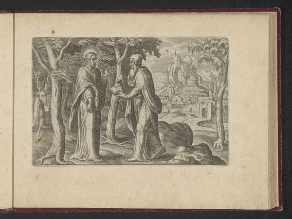Curator: Here we have Johann Sadeler’s "The Creation of Adam," a print housed at the Harvard Art Museums. It depicts a traditional rendering of the biblical creation story. Editor: What strikes me is the overwhelming feeling of abundance and the very fine detail for such a relatively small work. The composition teems with life and texture. Curator: Absolutely. Notice how the animals, each symbolic, represent the earthly domain bestowed upon Adam. The snake, of course, prefigures the Fall. Editor: And observe the line work! Sadeler's precise engraving technique allows for incredibly nuanced shading and detail, particularly in the musculature of Adam and the flowing robes of God. Curator: These established symbols and their rendering helped shape how we understand the story itself, reflecting deeply embedded cultural narratives and spiritual beliefs. Editor: It's fascinating how the artist balances realistic detail with symbolic representation, creating a work that is both visually engaging and conceptually rich. A fascinating piece for understanding the time.