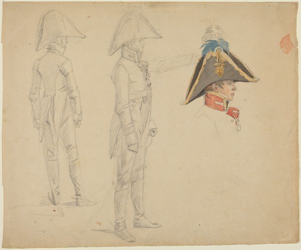 Antoon Derkinderen made this study of standing figures with shields in the late 19th or early 20th century. The sepia ink gives a warm, muted tone to the figures, enhancing their historical feel. The choice of ink and paper as a medium lends itself to quick sketching and allows for a level of spontaneity. This immediacy captures the artist's initial ideas and impressions, emphasizing the process of exploration and discovery. The figures, rendered with bold strokes and fluid lines, have a certain monumentality and weight. You can see how Derkinderen was working out the details of posture, costume, and the way light falls on the figures. The monochromatic ink wash emphasizes form and shadow, allowing Derkinderen to focus on the essential elements of design, and the interplay between light and shadow in his compositions. The process reveals the labor and time invested in bringing an idea to life, emphasizing the importance of both material and context in understanding the full meaning of the artwork.