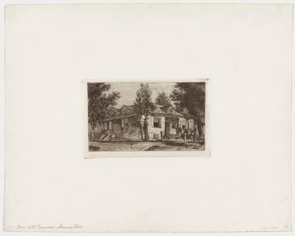 Curator: Rodolphe Bresdin's "The Enchanted House" presents a world teeming with intricate detail. The density of the engraving is striking. Editor: It’s incredibly detailed, almost claustrophobic! What kind of a societal commentary is Bresdin making with this image? Curator: Bresdin, operating outside the mainstream art world, likely sought to showcase a vision of utopian communal living through meticulous engraving—a painstaking labor. Editor: But consider the socio-political dimensions. Could this be a commentary on the opulence of the upper classes during a period of social upheaval? The house, while idyllic, feels detached. Curator: Perhaps. The labor involved in creating such detail is undeniable, and the utopian fantasy contrasts with the grim realities of 19th-century labor. Editor: It's fascinating how technique intersects with social commentary, revealing underlying power dynamics even in seemingly escapist imagery. Curator: Indeed. Bresdin's mastery and dedication to his craft are evident. Editor: And in this piece, we see reflections of his era and its discontents.