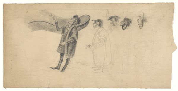 James Ensor sketched "Skulls and Willy Finch in the Dunes" with pencil on paper. The prominent skulls carry a deep symbolic weight, serving as a stark memento mori, a reminder of our mortality. Skulls have appeared throughout art history, dating back to antiquity, often used to provoke contemplation on the fleeting nature of life. Consider the Danse Macabre, a medieval allegorical motif featuring the personification of death leading people from all walks of life in a dance towards the grave. This motif underscores the universality of death, and the futility of earthly pursuits, reflecting our collective subconscious anxieties about mortality. Here, Ensor juxtaposes these potent symbols of death with the figure of Willy Finch, a fellow artist, amidst the natural setting of the dunes. This juxtaposition may serve as a meditation on the relationship between life, art, and mortality, provoking a deep, subconscious engagement with the viewer.