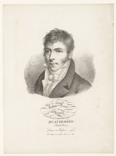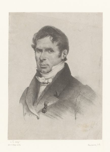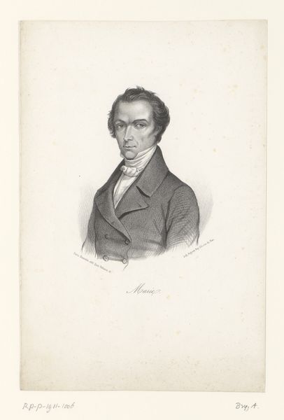 Editor: Here we have Auguste Toussaint Lecler’s "Portret van André Dupin," created in 1827. It's a print, a drawing with ink on paper... I find the subject’s expression very stern. What jumps out to you when you look at it? Curator: I notice the labor and materials involved in producing this print, especially during that era. Consider the process: the original drawing, the engraving, the printing itself, each stage involving skilled artisans. This wasn't a solitary act of "genius," but a collaborative process embedded in a specific economic system. How do you think this process shaped the final artwork? Editor: That's fascinating! I hadn't considered the collaborative aspect. So, the choice of printmaking—as opposed to, say, an oil painting—speaks to something about accessibility or dissemination of the image? Curator: Precisely. Printmaking allowed for the wider distribution of Dupin’s image, influencing public perception of him. Dupin, as a prominent lawyer and politician, surely understood this. Do you think he might have commissioned this portrait specifically to enhance his public image through mass reproduction? Editor: It seems highly plausible! The control of the image would have been in Dupin's interest to portray himself to the public as he saw himself. Was this a common strategy? Curator: It became increasingly common. We see a rise in printed portraits coinciding with a growing middle class and increasing political engagement. Consider the paper itself - its availability and cost reflect broader economic shifts. Can we see the material conditions of 19th-century France reflected in the print itself? Editor: I guess so! Considering the labor, the materials, and the intention behind its creation completely transforms my initial reading of it. Thanks for making me see that, really! Curator: Indeed! Recognizing the materials and their relationship to society enhances our understanding and appreciation of art in so many contexts.
