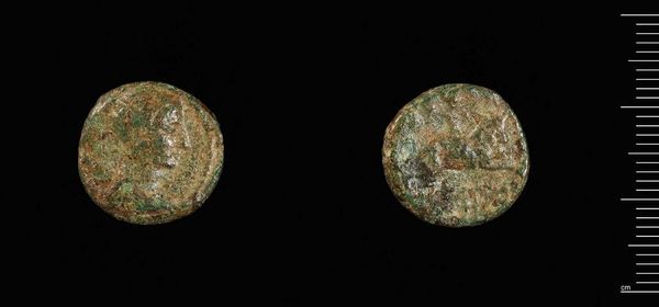 Editor: This is a Radiate Fraction of Galerius, Rome. The materiality strikes me; it is worn and weathered. What does this reveal to you about its place in society? Curator: Consider the material composition, probably bronze, and its small size. Its materiality suggests a mass-produced object, intended for wide circulation and consumption within the Roman economy. Editor: So its value resides in its circulation rather than its inherent preciousness? Curator: Precisely. The wear and tear speaks to its journey through countless hands, a tangible link to the labor and commerce of the time. Editor: That’s fascinating. I had not considered it in such a concrete way.