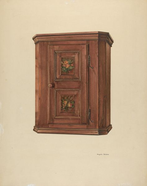 This drawing of an armoire was made by Sarkis Erganian, using what looks like colored pencil on paper. I find myself drawn to the texture here, it's not about hiding the medium, but about celebrating it. You can really see the individual strokes of the pencil, building up the wood grain, almost like a topographical map of the cabinet’s surface. It makes me think about the act of looking, and drawing, as a kind of slow, deliberate process, almost meditative. Take a look at the way the light catches the edges of the doors, how Erganian uses subtle shifts in tone to create a sense of depth and volume. The warmth of the wood is just gorgeous. It’s so quiet, this piece, but there’s a real intensity in the observation, it reminds me of the paintings of Giorgio Morandi, simple objects rendered with so much care. Like Morandi, Erganian reminds us that even the most mundane things can be beautiful, if we really take the time to look.