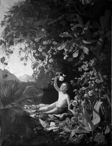 Johan Frederik Damm painted "Frugter på en klippeblok" using oil on canvas, creating a tableau of luscious fruit and foliage. Instead of using traditional, historical, or religious painting, Damm’s choice of the still life infuses the work with social context. Fruit becomes a symbol of abundance and prosperity. Through painting, Damm captures the textures, colors, and forms of the harvest. The smooth skins of the peaches, the plumpness of the grapes, and the varied greens of the leaves all contribute to the paintings verisimilitude. The labor involved in cultivating and harvesting these fruits is indirectly referenced, highlighting the relationship between the painting and the cycle of production and consumption. Damm's composition invites a reflection on the everyday, transforming common objects into subjects worthy of artistic attention, challenging the traditional hierarchy between fine art and the material world.