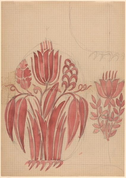 This print titled Nénuphar, was made by Maurice Pillard Verneuil. The flat, decorative style reflects its time, most likely during the late 19th or early 20th century. We can imagine Verneuil, as a designer working within the Arts and Crafts milieu, where he sought to create beautiful, functional objects that could be made by hand or with simple tools. The design of this print speaks to this artistic approach, as it seems Verneuil was exploring the ways in which natural forms could be abstracted and stylized for mass production, and to create surface patterns for textiles or wallpapers. Despite its flat appearance, there is a great amount of care and consideration in the process in which the artist carefully renders each petal and leaf, creating a sense of depth and texture through subtle variations in line and tone. This blend of naturalism and abstraction is typical of the period, and reflects a desire to create objects that were both beautiful and useful. Verneuil here has challenged the traditional distinctions between fine art and craft.