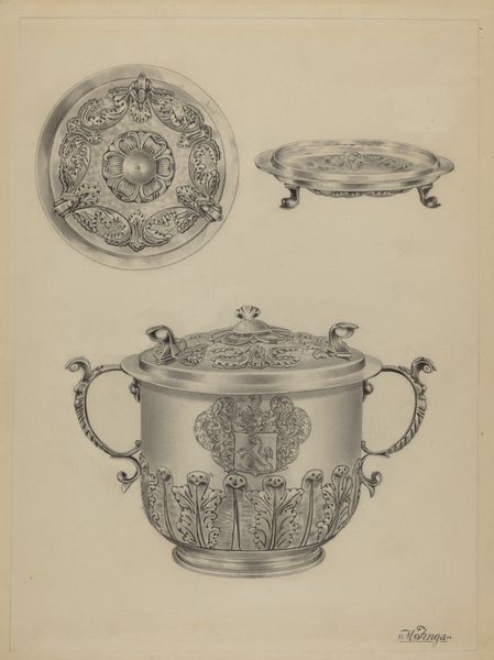 Clayton Braun made this silver sugar bowl drawing with pencil on paper. You know, I'm often struck by how drawings can capture the essence of an object with such simple means, like the subtle shading that suggests the reflective surface of the silver. Look closely and you'll see how the pencil lines dance across the page, creating a delicate balance between form and light. There’s a real tenderness in the way the artist renders the curves and contours of the sugar bowl. It's not just a representation, it feels like a loving meditation on shape and design. And then there's that tiny emblem in the center. It's a small detail, but it adds so much personality to the piece. It reminds me of the work of artists like Agnes Martin, who found beauty in the subtle variations of repetitive forms. It is in these details that this drawing moves past the purely representational into a kind of poetry.