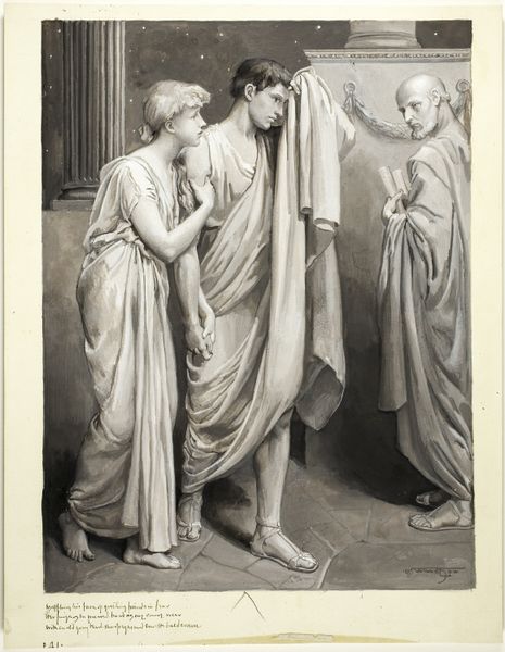 Will Hicock Low created this drawing called 'He Met Within the Murmurous Vestibule, His Young Disciple' using graphite and gouache, sometime in the late 19th or early 20th century. Note the burning flame beside the sphinx, a motif with deep roots. The flame, an ancient symbol of purification and enlightenment, appears across cultures, from the hearths of early humans to the eternal flames of temples, signifying knowledge and immortality. Juxtapose this with the sphinx, a guardian of knowledge. In ancient Greece, the sphinx posed riddles, and those who failed to answer met their doom. Here, the sphinx and the flame embody the trials and illumination inherent in the pursuit of wisdom, a symbolic gateway to understanding. The master clasps the hand of his disciple, echoing gestures found in antiquity and the Renaissance, signifying the transmission of knowledge. This motif reflects our collective subconscious, yearning for guidance and truth, resurfacing through the ages.