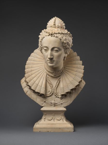 Editor: So, this is a porcelain sculpture titled "William Augustus, Duke of Cumberland" made by the Chelsea Porcelain Manufactory between 1744 and 1757. It’s striking in its stark whiteness and how it presents power, almost as propaganda, even. What story does it tell from your perspective? Curator: It's a fascinating piece because it speaks to the politicization of art. Consider how porcelain, once a rare and coveted material, became a medium for representing figures of authority. This bust was created in the wake of the Jacobite risings. How do you think representing Cumberland, a military figure, in such a delicate material affects its reception? Editor: That's a good point. It’s almost a paradox—fragile material for a war hero. Does that lessen his impact? Curator: Not necessarily. Think about the target audience. Porcelain figures like this would have been displayed in wealthy homes, subtly reinforcing loyalty to the Hanoverian dynasty amongst the elite. This wasn't just art; it was a carefully crafted message, shaped by the politics of the time and consumed within a specific social sphere. Are there elements beyond pure propaganda? Editor: I suppose the artistry is definitely worth some discussion! The attention to detail in the hair and clothing seems like a real statement. Almost, in its own way, communicating the sophistication of the court. Curator: Exactly! It's a dance between artistic skill and political messaging, aimed at a specific audience. And museums play a crucial role by maintaining, interpreting, and contextualizing that message for contemporary society. Editor: This piece reveals that propaganda or messages in art, which feel pervasive now, are certainly not new. Curator: Precisely. It makes me think about our present, who are the Dukes and Duchesses immortalized now?