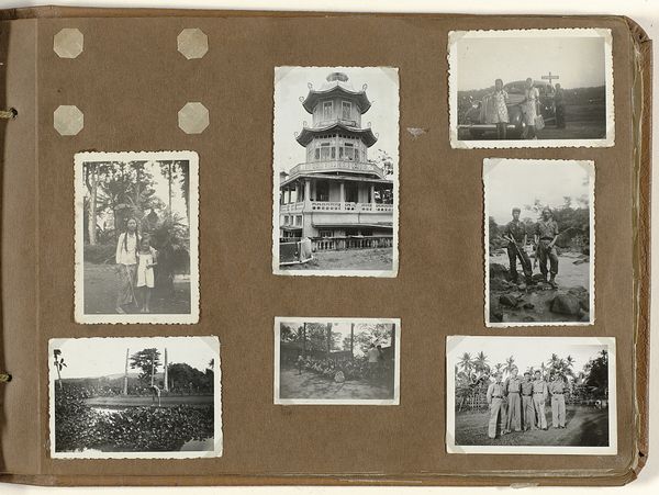 This collection of black and white photographs, called Ambtsgebouwen Semarang, is mounted on card. Look at the way these images are presented, almost like they are pinned down. The arrangement, with its irregular spacing, makes me think of the creative process as a collection of moments, or snapshots, of a journey. These photographs, with their monochrome palette and candid compositions, have an immediacy that really speaks to me. Take the bottom left image, the lone figure standing in the landscape. The way the light catches the scene creates a sense of drama. It’s like a moment frozen in time, a snippet of someone's experience. The presentation reminds me of Gerhard Richter's Atlas, a collection of photographs and clippings. Both emphasize the value of art as a process of accumulating and arranging, where meaning emerges from the relationships between the elements. Ultimately, like any good artwork, it embraces ambiguity. It invites us to bring our own experiences and interpretations to the table.