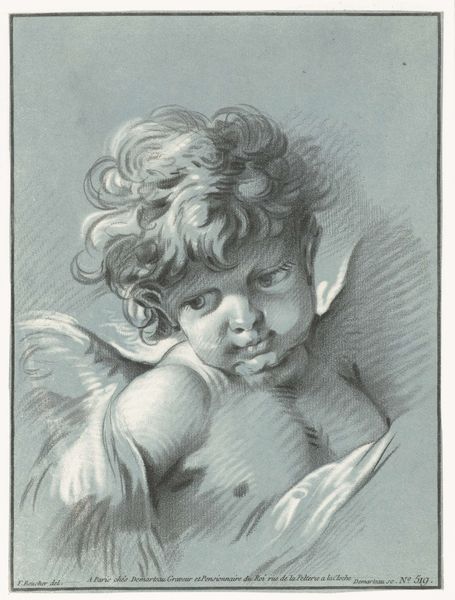 Editor: This is a photo reproduction – a gelatin silver print – by James Anderson, dating roughly from 1857 to 1875. It depicts a detail from Sassoferrato's painting "Madonna del Rosario." The cherubic figure has such a softness, but there's also something melancholic about his posture. What catches your eye? Curator: Oh, you're spot on! That tender melancholy is a potent part of its charm, isn’t it? For me, beyond the inherent beauty, it is the layers of reproduction that truly fascinate. Anderson, a 19th-century photographer, captured a detail of a Renaissance painting. It is not merely a document but an interpretation, filtered through his own artistic lens, then ours. A Russian Doll of artistry. Does that make sense? Editor: Absolutely. The layers of interpretation really change how we perceive the original artwork. Curator: It certainly does. Think about it, James Anderson would not have had the convenience of a digital camera and high-resolution print media at his disposal like we do today, to photograph a piece so well. One can almost imagine Anderson setting up his cumbersome equipment inside the Basilica di Santa Sabina, light levels would have played such a major role in its final appearance, the atmosphere almost palpable. Editor: It’s like we’re viewing the Renaissance through a Romantic lens, literally and figuratively! I'm struck by how this photo almost feels more intimate than viewing the full painting. Curator: Exactly! By focusing on a single cherub, Anderson isolates this feeling and intensifies it. I see not just devotion, but also perhaps the weight of responsibility, a very human sentiment assigned to a divine being. And this interpretation is largely due to Anderson’s choice of detail and medium. Editor: This conversation really adds a different depth and historical perspective to a piece that would've been simply a nice old-timey picture. Curator: Yes, thinking about those artistic choices and technological limitations unlocks such a richness. These reproductions aren't copies; they are conversations across time.