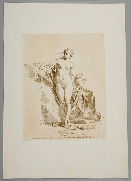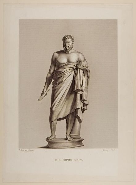 Curator: This is Henri-Guillaume Chatillon's rendering of Antinous as Aesculapius. What strikes you about it? Editor: The intense stillness, almost serene. The figure emanates an ideal, but it feels strangely cold, doesn’t it? Curator: Indeed. The serpent is a key symbol. Aesculapius, the Greek god of medicine, often appears with a snake, a representation of healing and resurrection. Editor: Antinous's deification is politically charged. Hadrian immortalized his lover, but that act also solidified imperial power. Curator: The adoption of Aesculapius’s symbolism merges Antinous with established divine iconography, elevating him but also perhaps containing the meaning of his existence. Editor: Creating a narrative to control public memory—it speaks volumes about power dynamics then, and the power of art to challenge or reinforce those structures now. Curator: It makes you think about the narratives we construct and inherit. Editor: Absolutely, a reminder of the politics that shape our ideals.