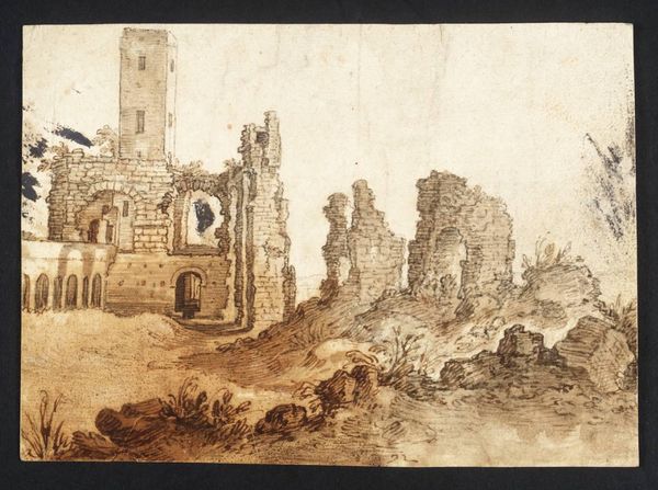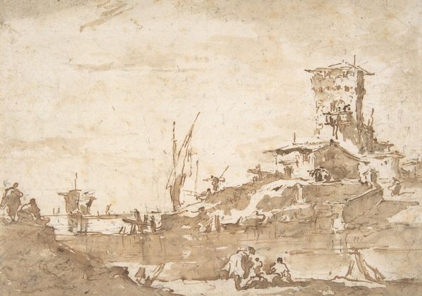 Francesco Guardi, a Venetian painter, sketched "Capriccio with a Seaport and Classical Ruins" using pen and brown ink, creating a fantastical landscape. Guardi lived in a time of significant social stratification. Venice was a hub of trade and cultural exchange, but also a city with a rigid class system. Here, Guardi envisions an imaginary scene, blending the romantic allure of classical ruins with the bustling activity of a commercial seaport. The crumbling architecture speaks to a bygone era, while the ships and figures evoke the contemporary energy of Venice. The figures populating the scene appear timeless, almost allegorical. Are they merchants, travelers, or simply inhabitants of this imagined world? The lack of clear social markers allows viewers to project their own understanding and potentially reflect on our relationship with history and place. As Guardi blurs the boundaries between past and present, fact and fiction, the viewer is invited to contemplate the cyclical nature of civilization. The emotional impact lies in recognizing both the grandeur and the fragility of human achievement.