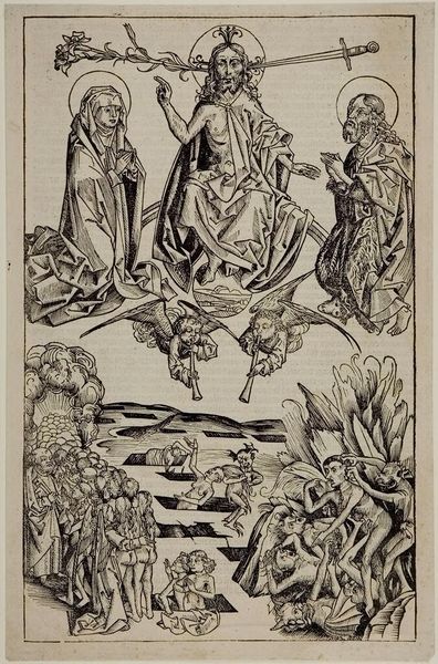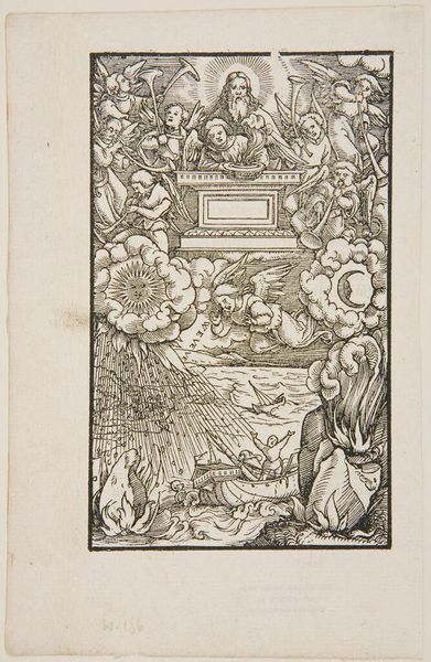 Editor: This is Hans Holbein the Younger's "The Throne of God and the 24 Elders." It's quite detailed, depicting a celestial scene. What strikes you about this work? Curator: It's fascinating to consider this work in the context of the Reformation. Holbein was working during a time of immense religious upheaval. How do you think this image of divine order might have functioned amidst such social and spiritual disruption? Editor: Perhaps it offered a sense of stability or a vision of ultimate authority in a world that felt increasingly chaotic? Curator: Exactly. And consider the power dynamics inherent in the depiction of God enthroned, surrounded by adoring figures. Whose power is being legitimized, and whose is being challenged? Editor: I hadn't considered it that way. Thanks, I'll definitely view Holbein differently from now on.