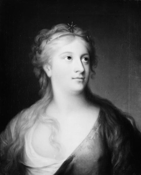 Curator: Here we have "Mrs. Michael Taney (Monica Brooke)," a portrait from between 1767 and 1770 by Charles Willson Peale. It's part of the collection here at the Met. Editor: My initial thought is that this painting, with its understated beauty, whispers of a contained era. A little like a porcelain doll gazing back at you across centuries. There is an aura of sadness to her. Curator: It is a very somber tone, but this oval format and the application of paint are typical of Peale, a very productive member of the early American art world. Considering his family’s craftsmanship history, you can observe his attempt to challenge traditional boundaries between artisan work and elite artistry. Editor: Yes, that domestic, handmade feel contrasts beautifully with the upper-class feel of the sitter. One could easily imagine that brooch being made with love by a relative. There’s an interesting tension between industry and intimacy. Does she even *want* to be portrayed for us like that? It feels stolen somehow, that emotion. Curator: Well, this was likely commissioned as a signifier of social standing; portraiture was a lucrative and highly competitive genre in that period. So there is definitely an interplay of commerce, social visibility and intimate individual identity involved. But the craft itself is not divorced from social hierarchy: access to materials, quality of tools, and patronage all dictated production and influenced aesthetic values. Editor: That's very true, and it really hits home here; despite the fact that she’s trapped within these social conditions, she remains real. One could make all kinds of stories based on her pose, her attire and the whole artistic decisions of her portraitist. Curator: Exactly, and focusing on materials lets us understand how art production can affect our knowledge of social production and vice versa. Editor: Well, she may have a tragic or fascinating story, who knows? For me, she has some lessons about how far beauty can come if you use a minimal of ingredients to portray it.