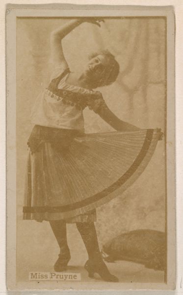 This is a promotional card for Virginia Brights Cigarettes, featuring an actress named Verona. The sepia tone flattens the image, reducing depth and emphasizing the figure's silhouette. The actress is captured mid-gesture; her extended arm and tilted pose suggest movement, yet the monochrome palette freezes her in time. Her dress, adorned with layers and geometric patterns, adds texture to the composition. The use of varied patterns creates a visual rhythm. The card's function as an advertisement is evident in the prominent text at the bottom, framing Verona as an object of desire and aspiration, subtly conflating the allure of the actress with that of the product. The rigid vertical format further underscores the commodification of both art and entertainment. This card invites us to consider how the structures of commerce and representation intersect.