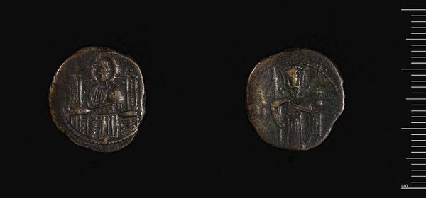 Curator: Holding in our hands is an Aspron Trachy Nomisma of Theodore I, Nicaea. Though the precise date remains unknown, its existence offers a glimpse into the Byzantine Empire. Editor: It's remarkable how this small coin, worn by time, evokes a sense of authority. The imagery, though faded, still resonates with power. Curator: Indeed. This coin, likely circulated during his reign, served as a potent symbol of imperial power and legitimacy. Notice how the iconography reinforces his divine right to rule. Editor: The use of religious imagery isn't surprising, considering the socio-political climate of the time. A very public declaration of faith and power. Curator: Precisely. Each symbol, meticulously chosen, carries significant weight, creating a powerful visual narrative for the everyday person. Editor: It's incredible to consider how such a small object once held such significance, shaping perceptions of authority and faith within the Byzantine world. Curator: A reminder that even the smallest artifacts can offer profound insights into the complexities of history.
