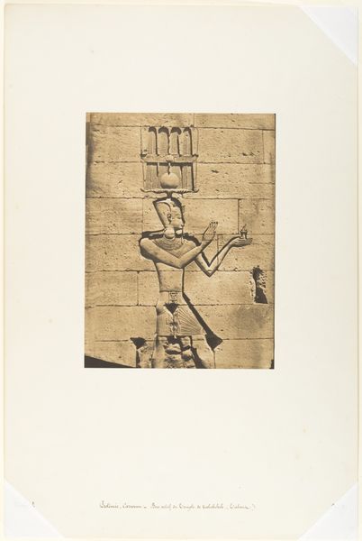 This photograph by Maxime Du Camp shows a bas-relief from the Temple of Kalabsha in Egypt. It was made using the waxed paper negative process. Du Camp was part of a literary circle in France in the mid-nineteenth century and travelled to Egypt with Gustave Flaubert. Like many artists and writers of the time, they were interested in what they saw as the exoticism of the East. The photograph presents an encounter between ancient Egyptian culture and the modernizing world of nineteenth-century Europe. Egypt at this time was under the rule of the Muhammad Ali dynasty, who were eager to modernize the country, with the assistance of European expertise. Du Camp's photographs, like this one, were both artistic and documentary. They provided visual records of monuments and sites. These were used by scholars and the wider public alike, and contributed to a growing European fascination with ancient Egypt. To understand this image better, you might look into histories of photography, the scholarship of Egyptology, and the cultural context of French Orientalism. The meaning of art is always tied to its moment.