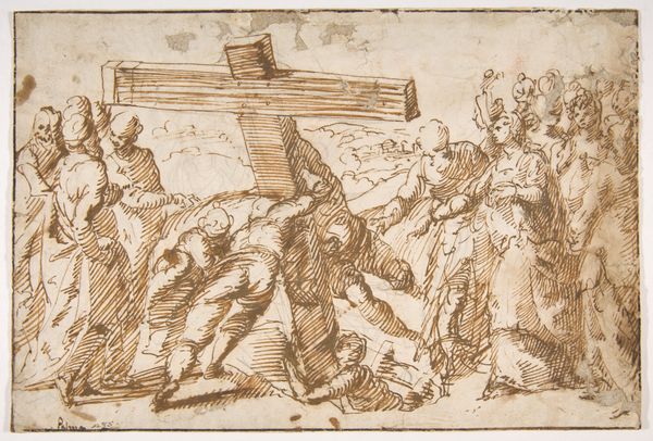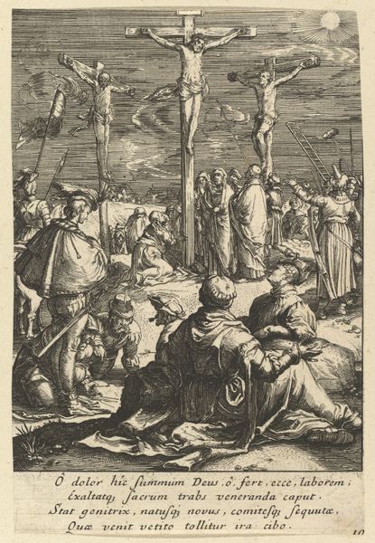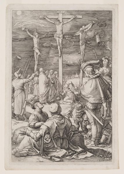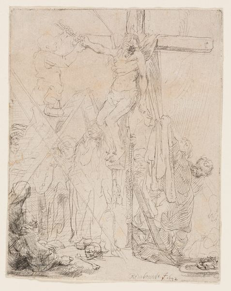 This is ‘The Crucifixion,’ an engraving made by Wenceslaus Hollar, a prolific and skilled printmaker of the 17th century. He used a technique called etching. The artist covers a metal plate with a waxy, acid-resistant coating, then scratches the design into the coating, exposing the metal. The plate is then bathed in acid, which bites into the exposed lines. Consider the labor involved in producing this image, not to mention the many other prints Hollar made during his career. The qualities of line and tone, achieved through careful control of the etching process, give the image its distinctive character. Printmaking was a key technology in the early modern period, allowing for the relatively quick and inexpensive reproduction of images and ideas. Hollar's prints allowed for the wide dissemination of visual information, contributing to the development of public opinion and the spread of knowledge. Understanding the making of this print helps us appreciate its role in the broader social and cultural context of its time.