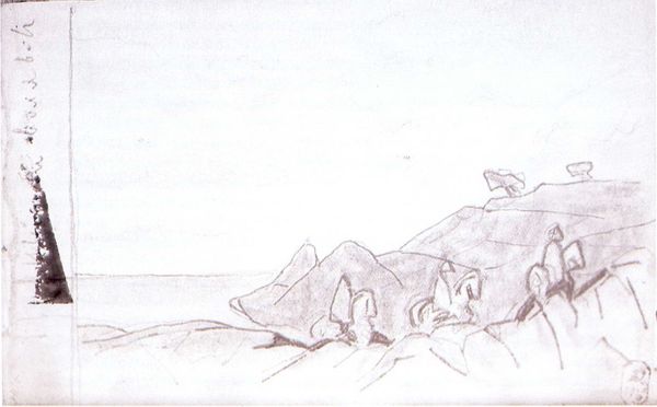 Nicholas Roerich captured the Guri Guri Dhar ridge with simple strokes in this drawing. What seems like a mere landscape is, in fact, steeped in symbolism, for mountain peaks have historically held a deep spiritual significance. Think of Mount Olympus in Greek mythology, or Mount Sinai in the Judeo-Christian tradition. Across cultures, mountains represent a point of convergence between the earthly and the divine. The upward-pointing peaks mirror humanity's aspirations, and the yearning for something higher, something beyond our grasp. Now, consider the psychological weight of such imagery. Mountains may appear in dreams as symbols of challenges, obstacles, or personal goals. The act of depicting them becomes a kind of ritual, connecting us to the collective human experience of striving and overcoming. The drawing of this ridge becomes more than just a picture, but a record of the universal, ever-cycling mythos of the human journey.