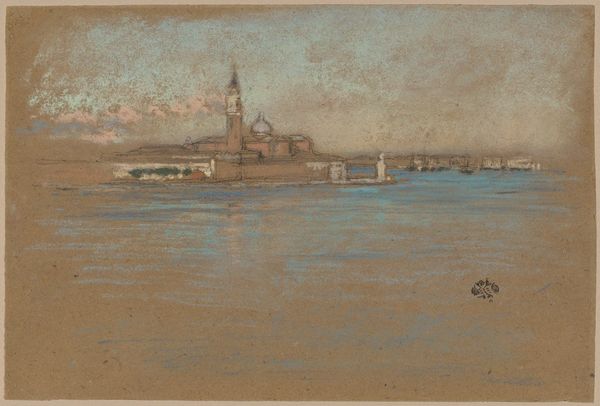 Editor: This is Whistler’s "Nocturne in Blue and Silver." It’s quite striking, all cool tones and indistinct shapes. What do you see in terms of his compositional choices? Curator: The arrangement of color planes is most compelling. Notice how Whistler employs a limited palette, primarily variations of blue and silver, to create a sense of atmospheric depth and tonal harmony. Editor: It feels very balanced, despite the asymmetry. Curator: Indeed. Whistler eschews traditional representational accuracy in favor of a subjective, almost musical arrangement of forms. The brushstrokes themselves are quite visible, aren't they? Editor: They are, lending a sense of texture to the otherwise smooth surface. I hadn't noticed that initially. Curator: The very materiality of the paint contributes to the work's aesthetic presence. It reminds us that we are looking at an object, not just a scene. Editor: That makes a lot of sense. Thank you for pointing that out. I'm seeing it in a new light.