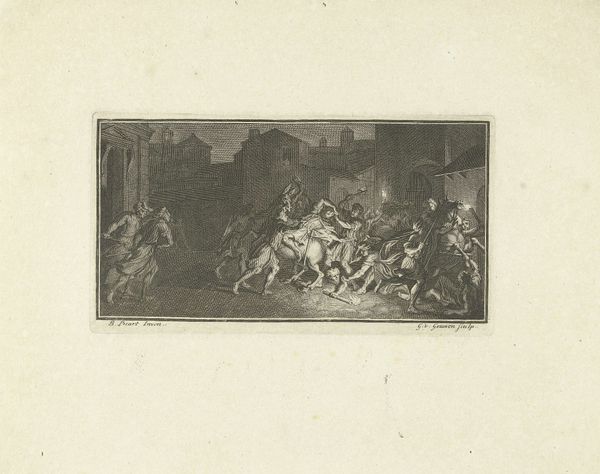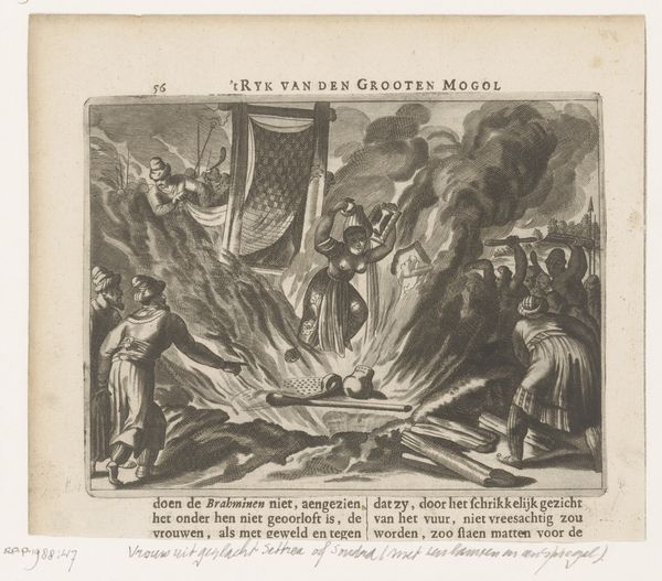 Johan Christoffel Schultsz captured "Brand te Amstelveen" in 1792 with etching. This piece arrives from a Netherlands gripped by both Enlightenment ideals and stark social inequalities. Here, Schultsz depicts not just a fire, but a moment of collective crisis in Amstelveen. The scene is active; figures are caught mid-rescue, their class distinctions subtly marked by their dress and actions. What is visible in their faces? The fire may ravage property, but its emotional impact—fear, resilience, despair—cuts across social strata. The church looms in the background, a silent witness. Is it a symbol of hope or a reminder of the established order that may have failed to protect its community? Schultsz invites us to consider how disaster can momentarily level societal artifice, revealing shared humanity but also underscoring existing vulnerabilities. It serves as a potent reminder of how shared experiences of crisis can expose and deepen societal fault lines, while simultaneously fostering unexpected solidarities.