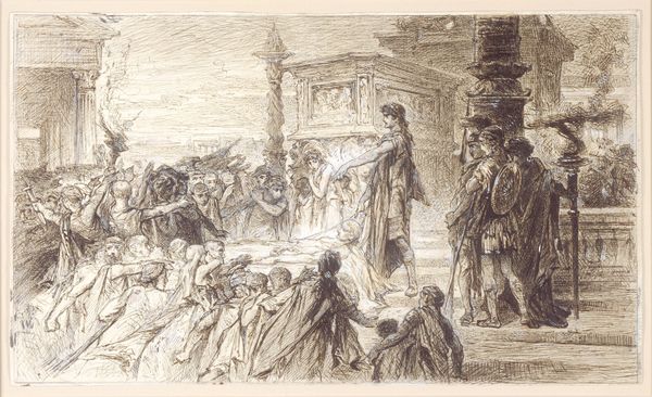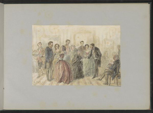 Editor: Gustave Doré’s “Pauline Viardot Gambling at Baden-Baden,” created around 1862, is a lively pencil drawing on paper. The scene, packed with figures, depicts what I assume is a gambling room, and it feels so energetic. What do you see in this piece beyond the initial impression? Curator: Well, focusing on the materials themselves, the humble pencil on paper belies the grand subject matter – an opera singer in a gambling hall. Baden-Baden was known for its casinos. Gambling was labor and pastime. But beyond that, Doré's quick strokes suggest mass production of images. Think of this drawing's relationship to prints, to distribution, to the marketplace. He wasn’t just depicting a scene; he was creating a commodity, feeding a desire for glimpses into high society. Where do you see the evidence for a “commodity”? Editor: That’s a really interesting way to look at it. I guess I was focusing more on the narrative. The clothing of the people is very interesting. But thinking about how it would be reproduced shifts the perspective, it seems more about consumerism… It sounds like art making has changed in order to satisfy customers? Curator: Exactly! The looseness of the pencil work facilitated quick reproduction. Doré's genius was recognizing how to tap into the public's appetite. The scene almost becomes secondary to the *means* of presenting the scene, through accessible, reproducible lines. Editor: So, it’s less about Pauline Viardot herself, or the gambling, and more about how Doré leveraged his skills and materials to produce images for mass consumption. That changes everything. Thanks! Curator: Indeed. Analyzing the physical properties and distribution mechanisms allows us to understand its position within a system of cultural and economic exchange, blurring lines of high art and mass media. It shows us art and labor!