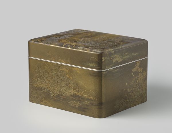 Editor: Here we have a 19th-century wooden box made by Bernhard J. Dondorf, designed to hold playing cards about the Dutch East Indies and featuring the Rotterdamse Lloyd logo. It looks quite simple but well-crafted. What can you tell me about this object? Curator: This unassuming box presents a fascinating confluence of materiality, labour, and colonial commerce. Its very being speaks to the expansion of global trade and leisure activities that marked the 19th century. Consider the wood itself; its origin, the process of its shaping, and the labour involved in transforming it. Editor: So, you are less interested in what’s inside, the cards themselves? Curator: Not at all! The cards and the box are intimately connected, they are part of a larger commodity ecosystem that helped fuel the Industrial Revolution and global expansion. This wasn’t some individual, artistic act but a highly industrialized undertaking, from design to distribution. This piece blurs the lines between functional object, advertising material and artistic representation. Editor: How so? It is just a container for cards. Curator: Yes, but how that container communicates colonial aspirations! The Rotterdamse Lloyd was a prominent shipping line, directly profiting from trade and movement of people. So how does the branding of the box and cards, shape consumption habits, class structures, or perhaps even power structures within Dutch society? Editor: That’s true. By displaying the Rotterdamse Lloyd logo so prominently, the company directly linked itself to ideas of leisure, travel, and by implication, colonialism. I’d never have considered this beyond just… well, the box for the cards! Curator: Exactly! Now, we might ask: who crafted the wood? What were the working conditions in that shop? Through close attention to materials, production methods, and circulation routes, we unlock a richer, more complex understanding of this seemingly simple wooden box. Editor: That really shifts my perspective. I need to remember to consider not just the artistic intent, but also who created this and under what conditions!