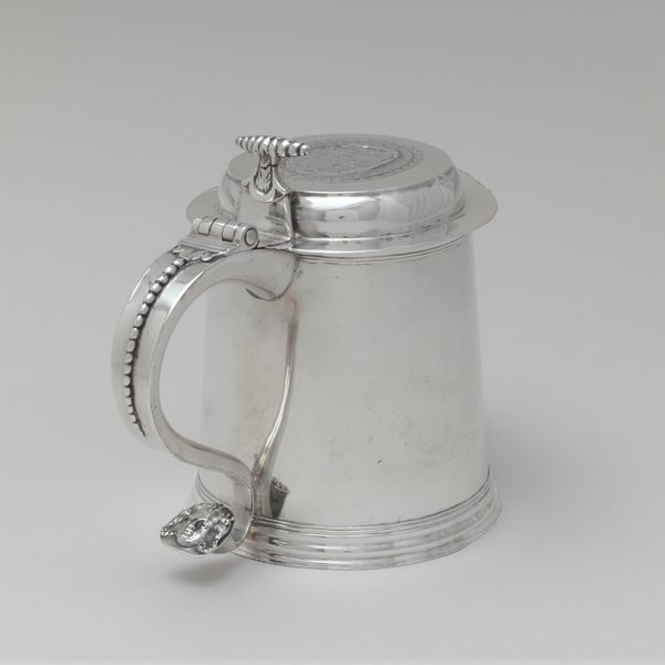 This silver tankard was made by Jacob Marius Groen, a silversmith working in the Dutch Republic during the late 17th and early 18th centuries. The tankard speaks to the burgeoning wealth and trade networks of the Dutch Golden Age. Silver, as a valuable material, signaled status and prosperity. Objects like these were not just functional, but also symbols of social standing in a hierarchical society. The level of craftsmanship reflects the highly developed guild system of the time, which set standards for quality and skill. Looking closely at the tankard, we can consider its place within the social rituals of drinking and hospitality. It is a tangible link to a specific time and place and clues to understanding the economic and social structures that shaped its creation. To truly understand this object, one needs to dig deeper into the archives of Dutch trade, guild records, and family histories.