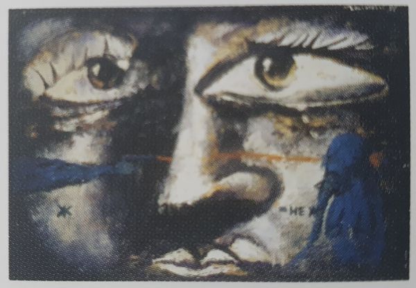 Curator: Here we have Oleg Holosiy's "Mascaron," created in 1990. Holosiy was a significant figure in the Ukrainian New Wave movement. Editor: It’s stark. The face seems quickly rendered in broad, dark outlines on a field of warm browns and greys. There's a raw, almost primitive quality to the way the features are defined. Curator: That raw quality reflects the sociopolitical anxieties of the late Soviet era in Ukraine, just before its independence. Holosiy used art as a vehicle for processing the shifting cultural landscape, often with an undercurrent of disruption. The almost mask-like presentation could be interpreted as commentary on the roles and expectations forced upon people during that period. Editor: I’m intrigued by the contrast between the bold, graphic lines and the almost washy background. The looseness of the ground seems to make the graphic lines feel that much more deliberate. It creates tension, almost like the face is emerging or dissolving. Curator: Precisely. His focus on figuration was a deliberate choice in a time of both increasing freedoms, and persistent restraints. Consider the implications of representing the human figure in a society that was theoretically egalitarian but demonstrably not. The "Mascaron" wasn’t just a face, it was a statement. Editor: Do you think the title, “Mascaron,” plays into this sense of imposed roles? It gives me this feeling of a kind of ornament or architectural detail devoid of true depth. Curator: Absolutely. The "Mascaron," a decorative grotesque, further emphasizes this concept of surface versus depth, facade versus reality. The figure is a construction. Editor: I hadn’t considered the art-historical tie-in. It feels more emotionally honest seeing this work through the lens of its social context, of a period with people struggling toward self-expression. The way those graphic lines define the image is almost an act of rebellion. Curator: Indeed. Holosiy used painting to provoke reflection on the societal frameworks surrounding the self, frameworks that his “Mascaron” seems determined to transcend. Editor: I appreciate the fresh sense of urgency. Thinking of Holosiy's artistic choices really clarifies what it took for artists to work within the political realities of that time.