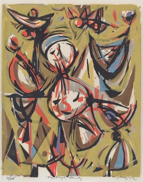 "Homage to Leoi Pei" is a screenprint made by Seong Moy. Moy’s abstract expressionist style is heavily influenced by traditional Chinese folk art. This print can tell us a lot about the cultural and artistic exchanges of the mid-20th century. The artist was born in Guangdong province in China, but he moved to New York in the 1930s and studied art there. As an artist and a teacher, he sought to synthesize Western modernism with his Chinese heritage. His work resonated with American audiences who were increasingly interested in non-Western art and philosophy during the Cold War period. The style references Asian art and the title references an Asian person, which tells us of its debt to Asia. When interpreting this work, one could look at how the mid-century American art world was becoming more diverse. This particular piece may have played a role in that, depending on how it was exhibited and received. Such a study could be aided by examining exhibition reviews or even sales figures from the time. The history of art is contingent on historical context.