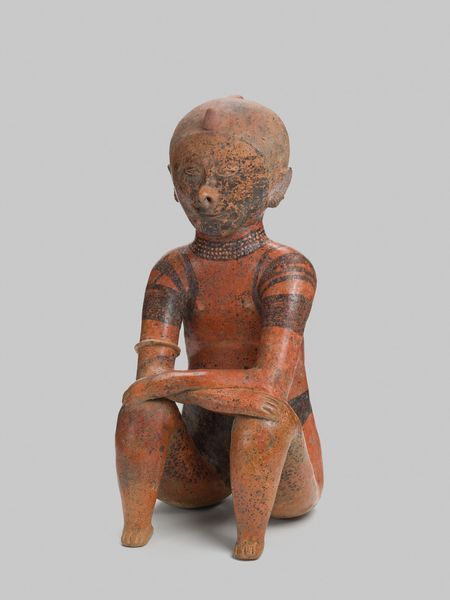 Editor: This is "Mboko (Female Cup Bearer)," a wooden sculpture by a Luba artist from around the 19th century, currently at the Minneapolis Institute of Art. The figure’s holding a vessel, and I’m curious about its function. What stands out to you in this piece? Curator: The first thing I notice is the labor invested in carving this wooden sculpture, but let's go deeper than initial aesthetic appreciation. Who would have commissioned such a piece, and what resources – tools, expertise – were involved in the process of turning this tree into a culturally significant object? Editor: It definitely seems like there was a lot of care put into the creation. Were these types of sculptures common for the Luba people at this time? Curator: More specifically, consider the ritual purpose suggested by the cup she holds. What role might the vessel and its contents—perhaps palm wine or some other substance—played in Luba society? Think about the distribution and consumption connected to its crafting. Editor: So, not just about appreciating it as art, but as an object with economic and cultural implications linked to its creation and use. Curator: Exactly. Also, look at the wood itself; can we identify the type, and what significance might it hold? Every aspect of its materiality connects to larger networks of production, value, and meaning within Luba society. We could study the evolution of carpentry tools available and where that puts this piece in the larger timeline of sculpture work. Editor: That's a fascinating way to look at it. It makes me think about all the hidden histories embedded within the object. Curator: Precisely. By centering material processes, we gain a far richer understanding. Next time you see a piece of art, try and ask: what human interactions led to it existing, and how did labor transform it from a simple element into an object of purpose? Editor: That is definitely a lens I'll use from now on. Thanks for opening up a new way to analyze artworks.
